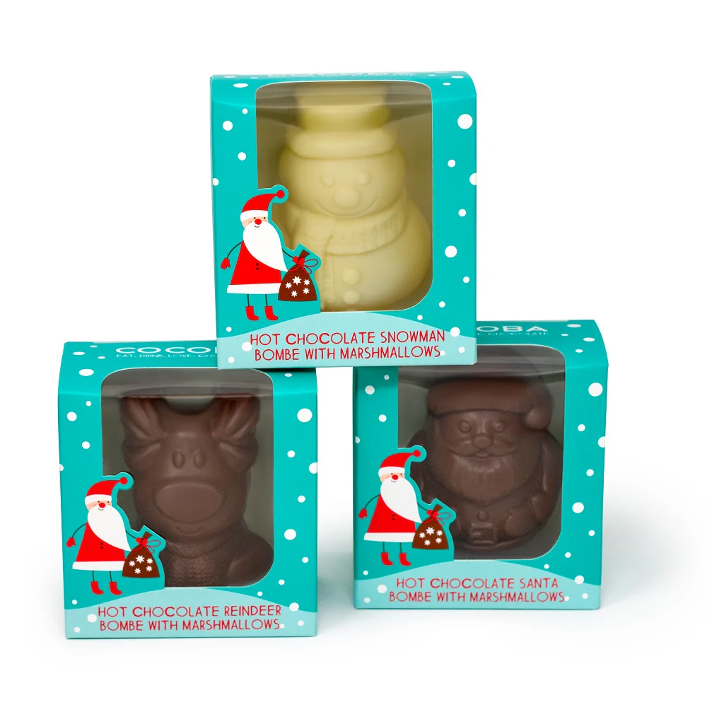 For a sweet, velvet-smooth hot chocolate, simply place the Snowman Hot Chocolate Bombe in a mug, slowly pour over steaming milk, and watch as the snowman melts to reveal the delicious mini marshmallows inside.